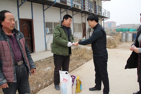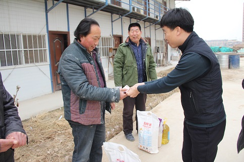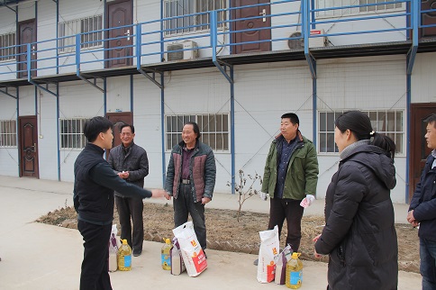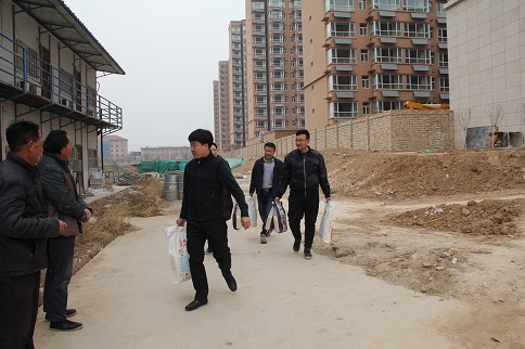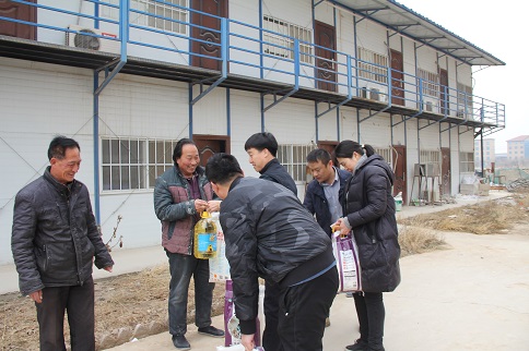 陳朋飛同志充分肯定了大家對公租房建設(shè)所做的貢獻(xiàn),他說:“你們是公租房建設(shè)的功臣,是你們的智慧和力量,是你們長期以來的辛勞付出,這一座座高樓才得以拔地而起,我代表公司黨支部感謝你們!”隨后,陳朋飛同志代表公司黨支部將大米、白面、食用油等慰問品和500元慰問金分別送到三名農(nóng)民工代表薛敬軍、魚明星和陳新院的手中。